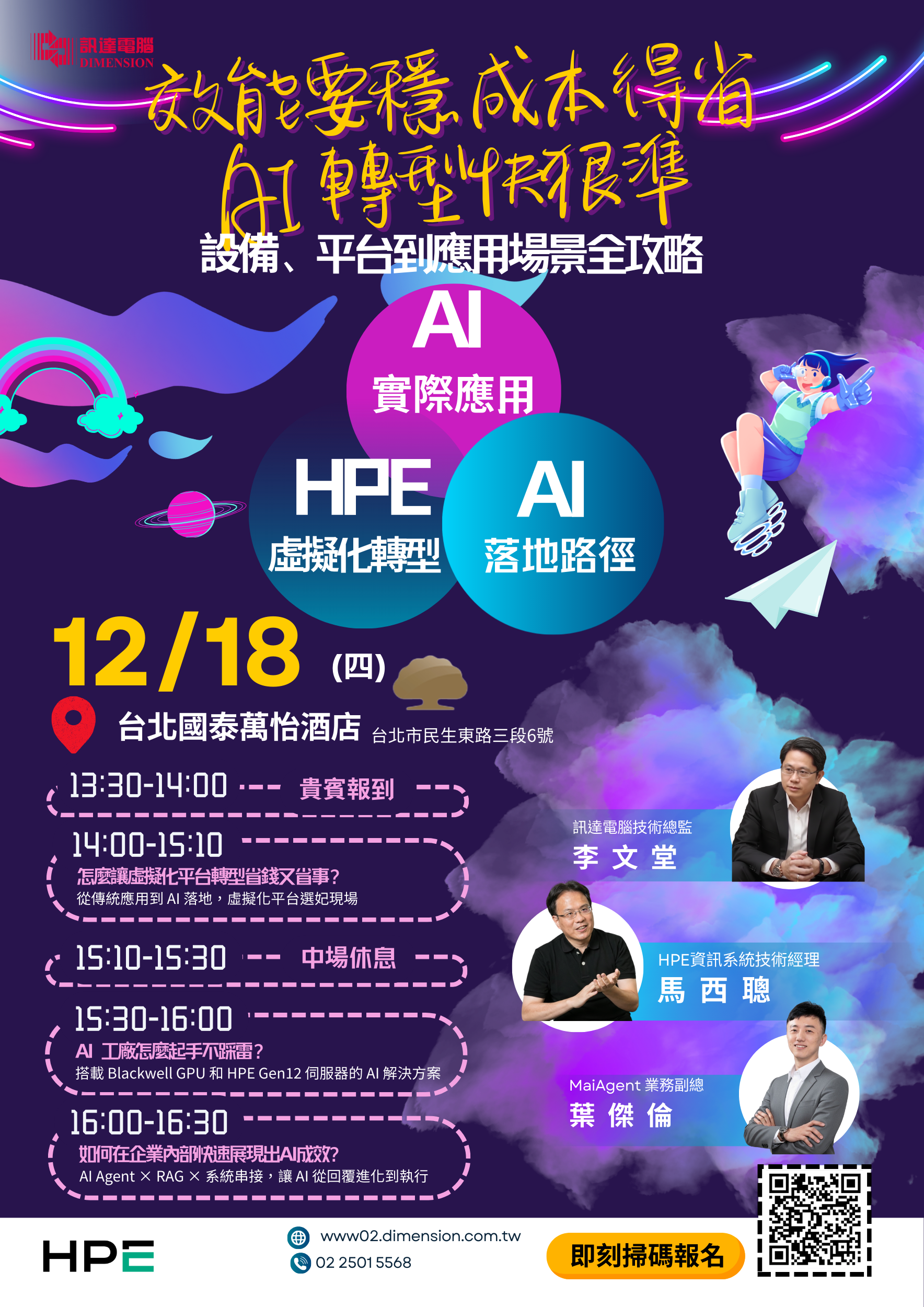 本次研討會將透過這三個面向,讓你了解企業如何在雙重壓力下完成虛擬化轉型,同時打造可以真正跑起 AI 的底層架構。